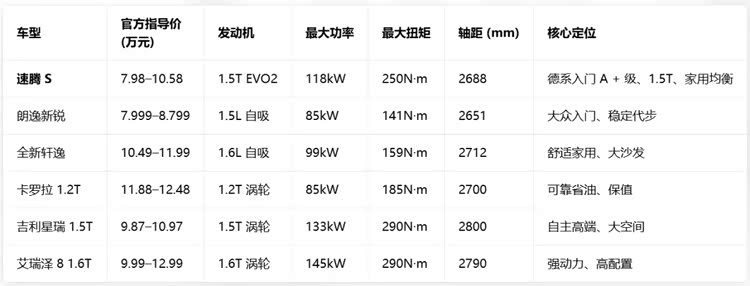 产品思路相对清晰,一方面形成速腾、速腾L和速腾S同台售卖,家族车型满足不同用户需求;速腾L轴距2731mm,属于长轴旗舰,主打家庭舒适大空间,而速腾S主打年轻人市场,更紧凑。