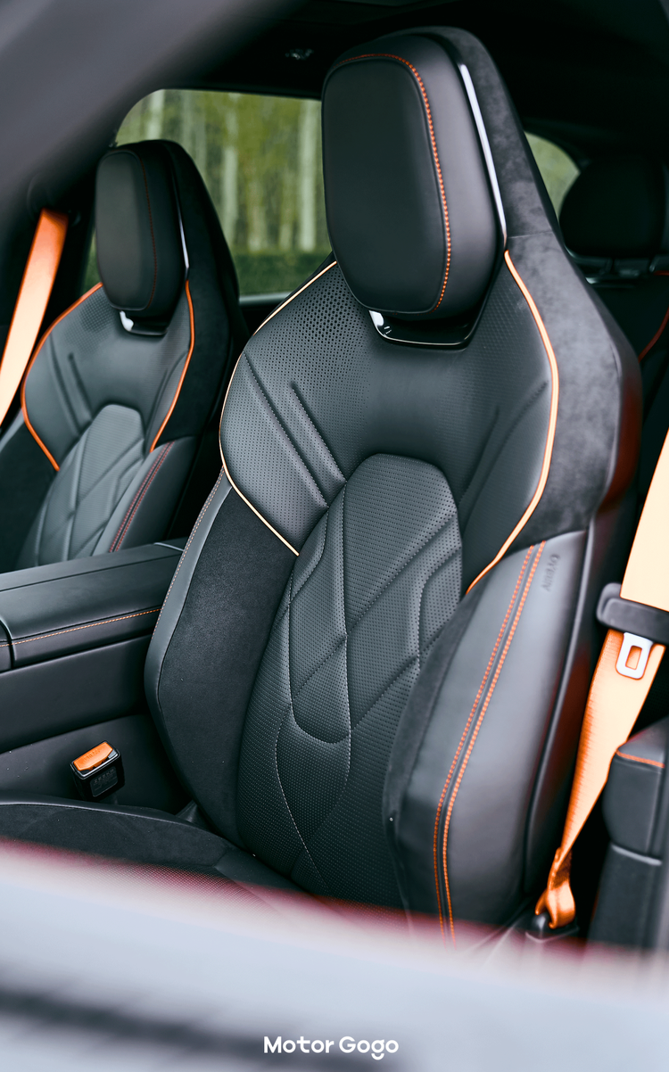 门板上、顶棚也从原来的真皮改成了 Alcantara 的材质,而座椅则是 Alcantara 和 Nappa 真皮双拼,运动和豪华兼具。