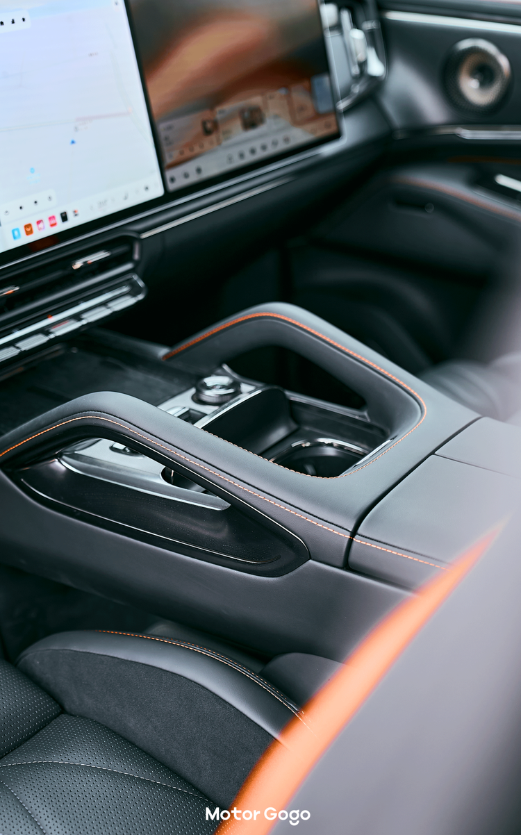 而且我们这台 Ultra+ 版本还带用主动稳定杆,车身姿态也会抑制得更好,坐在车内也能更从容和得体。