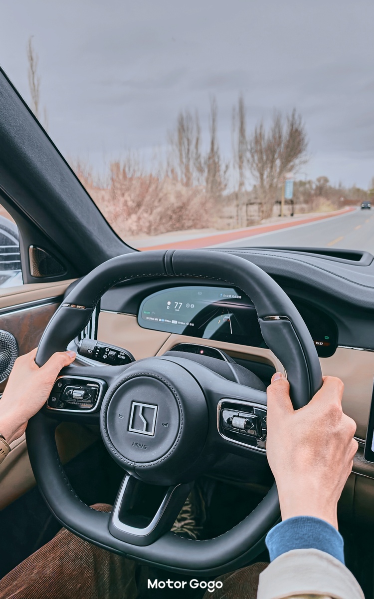 我们试驾的是一台 Ultra+ 版本,行驶在沙漠高速公路上,一路上都非常的从容。极氪 8X就算是经济模式起步也很猛,但它的策略不是类似特斯拉那种瞬间弹出去的那种,而是有一定的缓存时间。