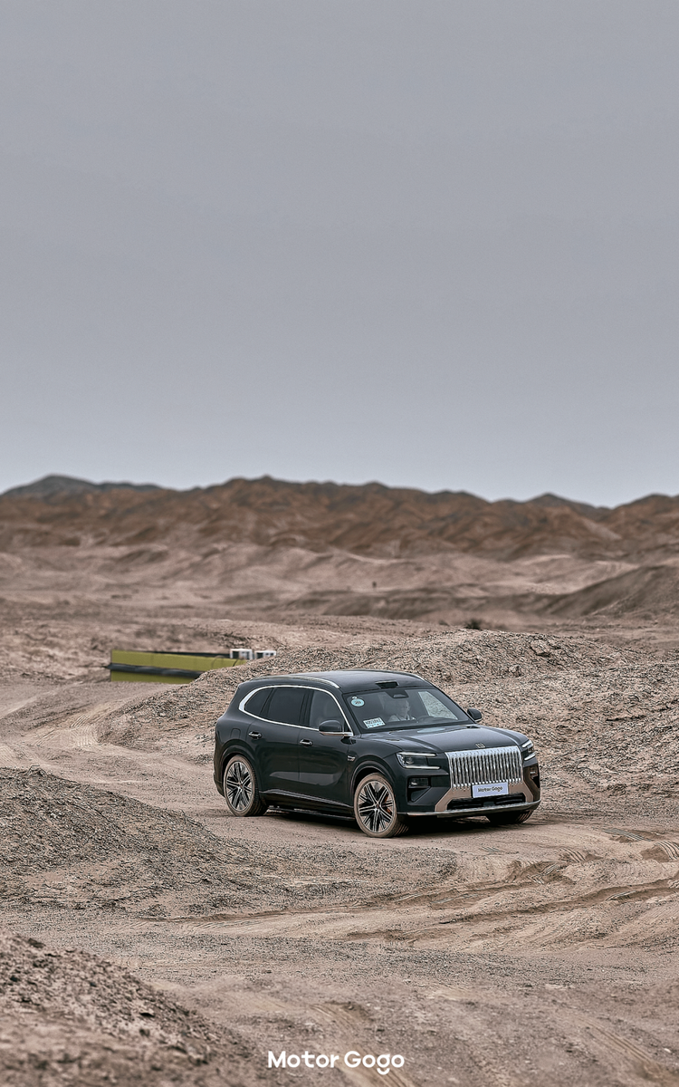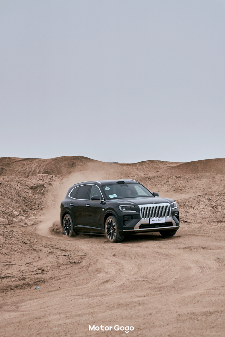 作为一台「公路之王」,我认为该具备的第二个能力则是「全场景」通过能力,包括一定的越野能力以及应对一定的沙漠道路。试驾当天我们走了一段沙漠路段,有凹坑、有砂石路等等,对于极氪 8X 来说完全能够从容应对。