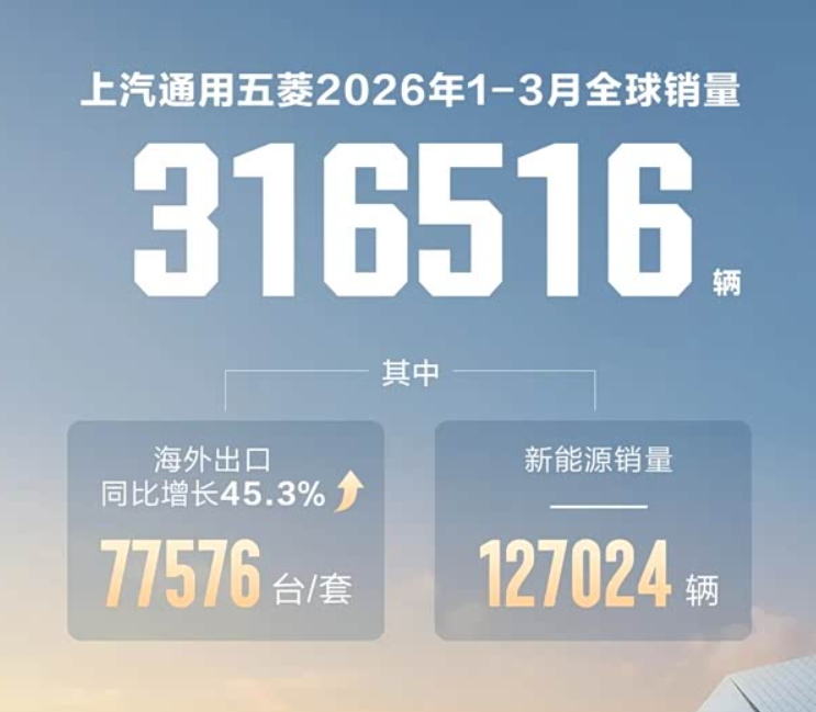 这是一份充满反差的数据。2026年4月初,上汽通用五菱公布了第一季度成绩单:1至3月全球累计销量316516辆,同比下滑16%;其中3月销量134030辆,同比下滑15%。