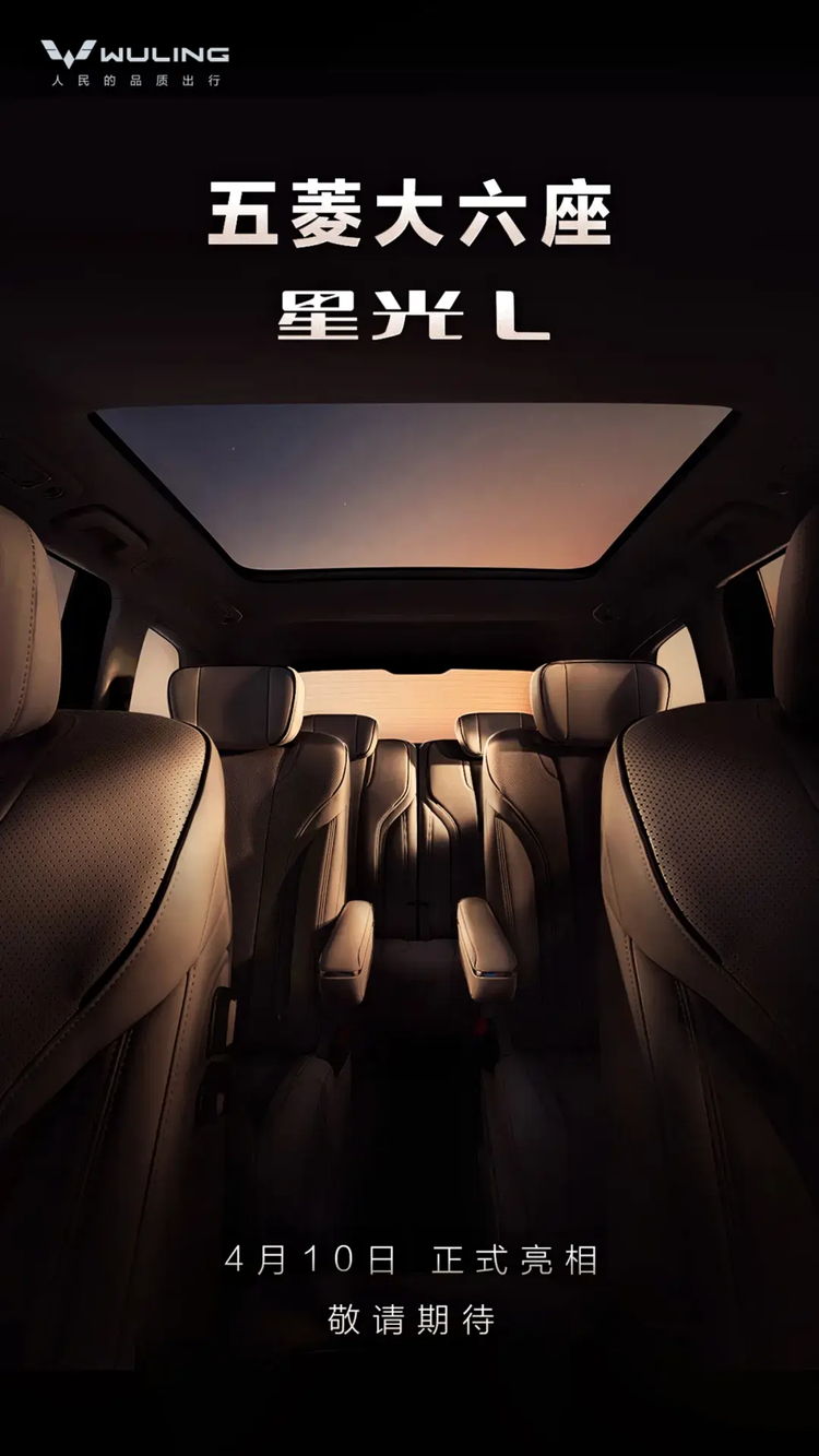 五菱星光L定档4月10日亮相,插混+大六座/纯电续航185km