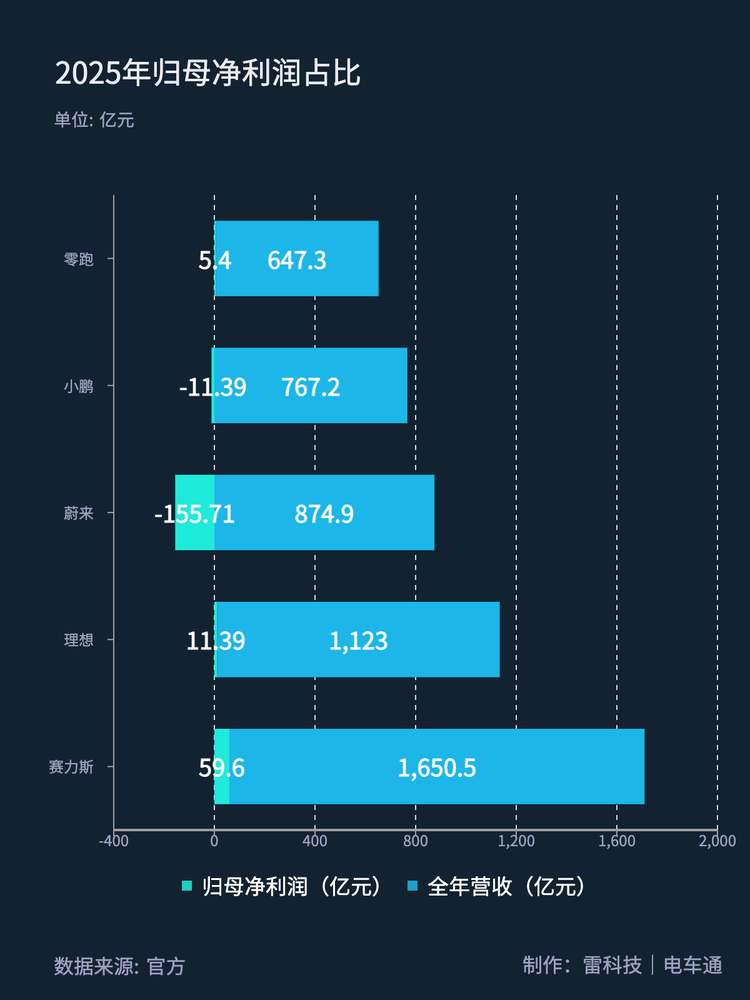 2025年,造车新势力阵营的盈利格局出现明显分化。