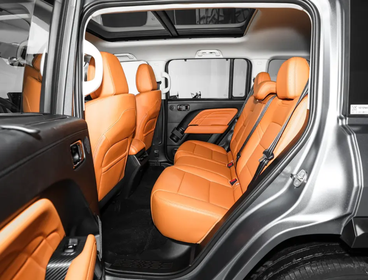 在科技上也是非常有看点,就是内饰一个布局就显得很年轻化,橘色添加后更符合年轻人的审美。同时保留许多物理,整个机械结构也有了保障,也能为车主带来便利性。副驾驶也带有抓手,多功能方向盘、经典电子档把,还有前排电调的座椅带通风加热功能,要比传统越野车更精细更舒服。Coffee OS车机也是涵盖非常多的APP,支持CarPlay、HUAWEI HiCar和自带高德地图,USB、Typе-C和语音助手都挺实用的。标配有10个扬声器、自动大灯和单色氛围灯,然后整个座椅的包裹性很足,座椅布局也很宽敞,车内也有一个很高的坐姿和视野,就算后排同样有宽敞的头部空间,我们都知道喜欢玩越野车的朋友,他们更在乎头部空间,所以哈弗猛龙PHEV在这一点上就很有卖点了。