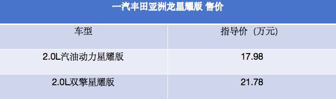 17.98万元起售!一汽丰田亚洲龙星耀版上市,配备专属外观套件