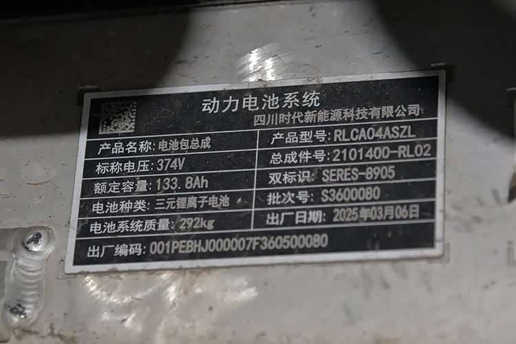 这辆增程版车型搭载了一台1.5T增压增程器,最大功率118千瓦,热效率44.8%,只负责发电,不驱动车轮。前电机是一台交流异步电机,最大功率165千瓦,最大扭矩315牛米,供应商来自华为。