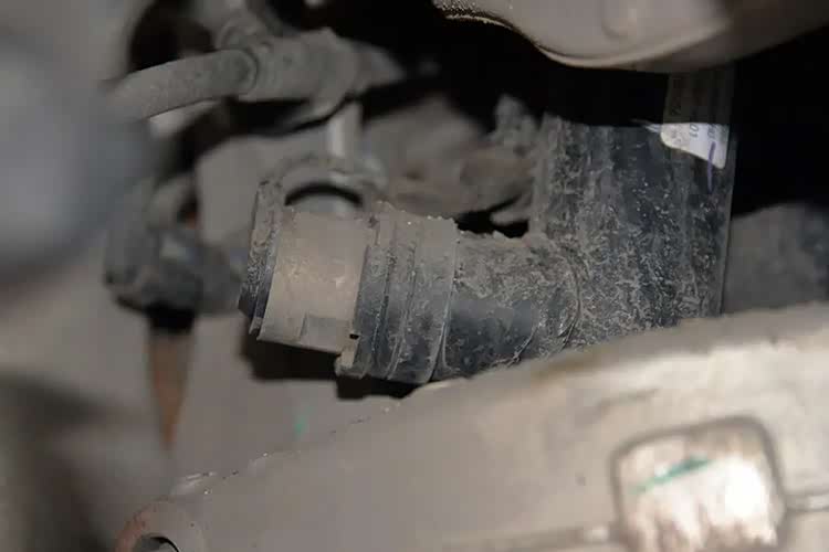空气悬架的充气泵被安装到了车尾,但没有使用塑料或者金属外壳进行保护和隔音。