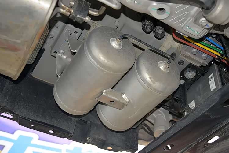 车尾底部还有两个空气悬架储气用的高压气甁。