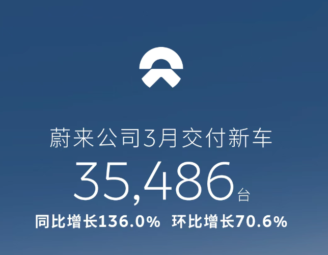 蔚来汽车3月交付35486台,同比大增136%,环比增长70.6%。主品牌依托全新ES8等车型稳固基盘,同比增长120.1%,乐道品牌交付了6877台,同比增长42.7%,环比增长130.7%,firefly萤火虫品牌交付6119台,环比增长130.3%。销量暴涨,也证明蔚来的换电模式和车电分离政策,还是深受市场认可的。