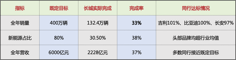 2021年魏建军公开定下2025年核心战略目标:销量400万辆、新能源占比80%、营收6000亿元,而实际完成情况与同行形成鲜明反差,具体数据如下: