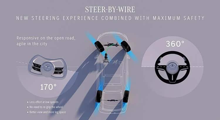 从官方内饰图中可见,新车换装半辐式方向盘,上下边缘采用弧形轮廓设计,既优化了上下车便捷性,也降低了对驾驶视线的遮挡。为适配这款特殊造型方向盘,奔驰还针对安全气囊完成全新开发。与此同时,线控转向系统的搭载,可有效过滤路面颠簸感,通过小幅转向操作即可实现大角度转向,提升日常驾驶便捷性。该系统配备双重信号冗余设计,且已完成超百万公里道路测试验证。此外,车辆车机界面视觉布局有所优化,预计将搭载全新MB.OS车载操作系统。
