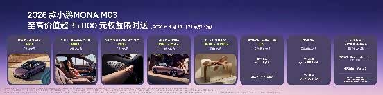 2026款小鹏MONA M03正式上市。作为小鹏面向年轻用户打造的AI智能纯电轿跑,新车以“全方位对标20万级车型”为开发基准,在外观设计、智能科技、驾乘舒适与主被动安全等核心维度实现全面进化,致力于为年轻用户带来越级出众的用车体验。本次上市共推出6款版型,官方指导售价依次为:540长续航Plus 11.98万元、640超长续航Plus 12.98万元、510长续航Max 12.98万元、610超长续航Max 13.98万元、510长续航Ultra SE 14.18万元及610超长续航Ultra SE 15.18万元。品牌同步推出上市专属权益,即日起至2026年4月30日24点前下定2026款小鹏MONA M03,限时送至高价值超35,000元权益。