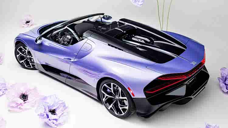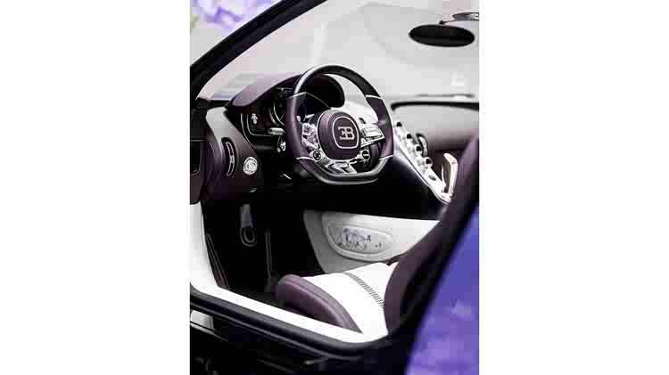 在内饰部分,布加迪将花卉主题延续得淋漓尽致,丰富色调的皮革与紫色点缀以及碳纤维元素相结合,由此形成了清晰的明暗对比,同时呼应外观颜色。