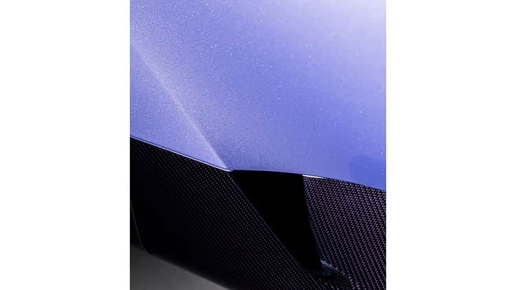 受到普罗旺斯薰衣草花田的启发,团队与客户共同选择了名为Lavender的外观颜色。根据光线的不同,这种颜色在带有棕色调的紫色与偏红的紫色之间变化。而车身下半部分则采用裸露的碳纤维织物,其颜色为另一种紫色调,从而形成对比效果。