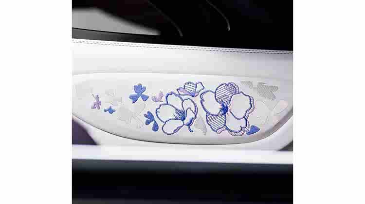 大量精致的刺绣尤为引人注目。在头枕上,设计师加入了由多股线组成的花卉图案。为此,每一个图案都需要经历多个步骤——从草图、数字化设计到最终的刺绣制作。