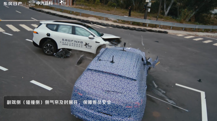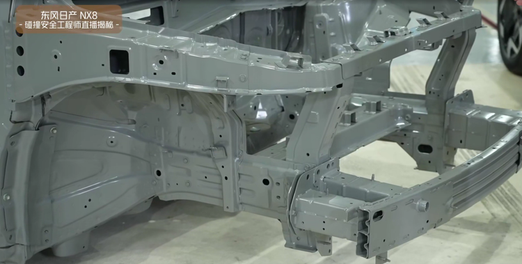 直播现场最震撼的一幕,莫过于NX8的碰撞测试实拍。不同于常规国标测试,东风日产采用了更为严苛的“超五星双碰撞”标准。当车辆以极高速撞击壁障,巨大的冲击力瞬间释放。镜头特写给到了碰撞后的A柱——这根采用了2000兆帕潜艇级热成型钢的“定海神针”,在剧烈冲击下依然保持完好,没有发生任何肉眼可见的弯曲。这意味着在真实的极端事故中,驾驶舱的生存空间被最大程度地保留了。NX8的“铠甲笼式车身”结构,像坦克的装甲一样,将撞击能量高效分散,确保车门能正常打开,气囊能精准弹出。