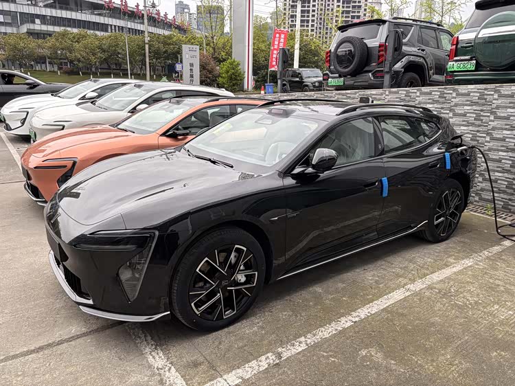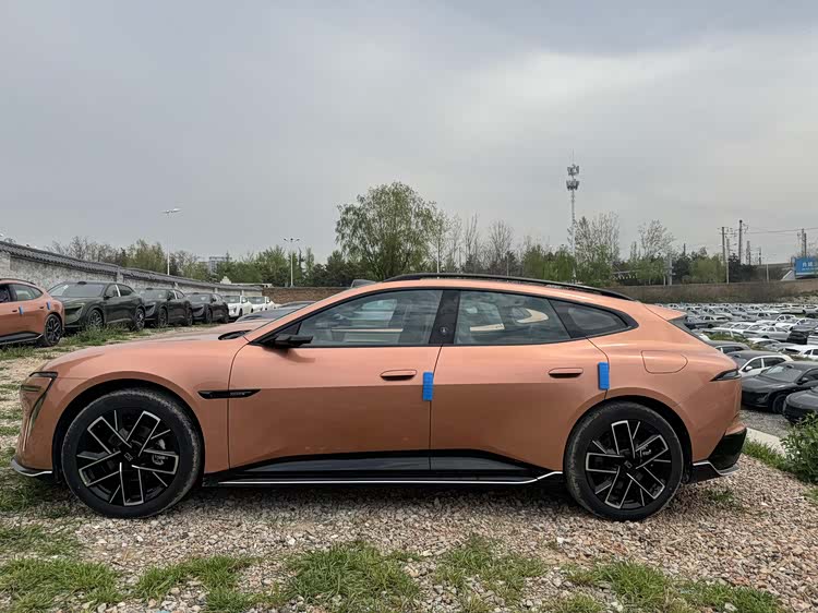 车身尺寸长宽高分别为4940/1960/1475mm,轴距2940mm,相比阿维塔06更大一些。车身侧面在B柱之后切换为典型的猎装姿态,并新增车顶行李架,再配合大尺寸环形尾翼,以及后包围处夸张的熏黑扩散器造型,显得更有运动气息。另外还换装了半隐藏式门把手、贯穿式光翼尾灯,加之无框电动门、电子外后视镜等,继续强调时尚前卫属性,并新增了鎏棕、晴蓝两款新配色。