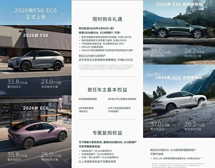 4月2日,蔚来推出了年度改款(2026款)的ES6与EC6。在竞争早已刺刀见红的30万级豪华纯电SUV市场,仅仅靠一次“常规升级”已经很难掀起波澜。那么,这一次的2026款 蔚来ES6(参数|询价),到底适不适合咱们普通人去入手呢?它真正值得买的理由又是什么?下面我们一起来分析分析。