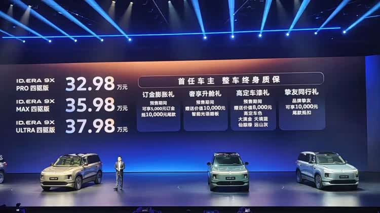 3月30日,上汽大众 ID.ERA 9X(参数|询价)正式开启预售,预售价格为32.98万-37.98万元,提供Pro、Max、Ultra三个版本。