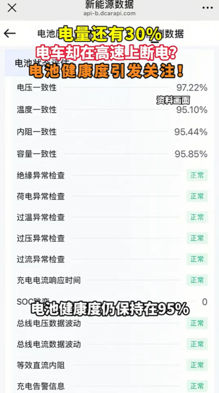 报道称,断电的原因是电池包内电芯失衡,或 BMS 对 SOC 预估出现偏差,触发断电保护。