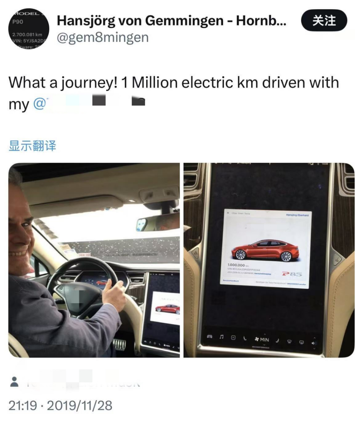因为在这之前,外国有一台纯电车成功跑了 100 万公里(现在报道称突破 200 万公里)。