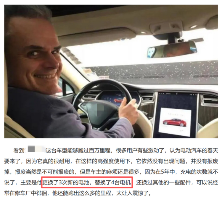 但要补充的一个细节是,前面提到的「百万公里某外国纯电车」,其实达到百万公里的时候,已经更换了 3 块电池和 4 次电机。