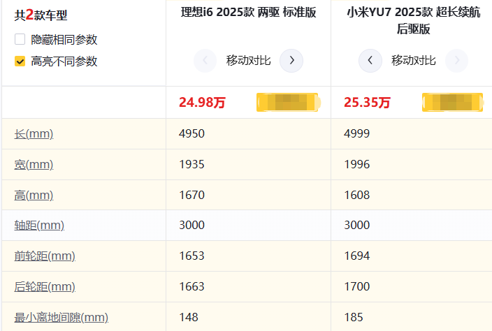 理想i6算得上是少数几款能和小米YU7掰手腕的车型了,整体的配置两款车型算得上是不相上下,但在外观方面,小米YU7会更好看一下,外观设计会更迎合年轻用户的喜好;
