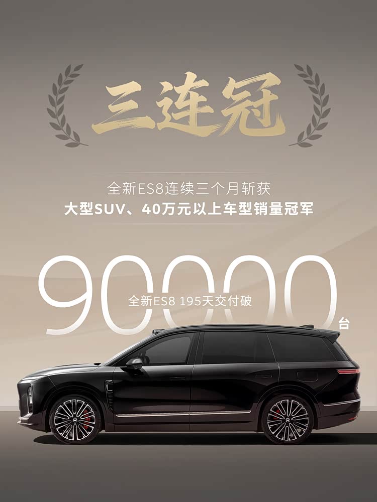 强劲的交付速度,背后是不可阻挡的市场势能。2026年3月,蔚来品牌整体交付再创新高,交付新车22490台,同比暴涨120.1%,环比增长48.4%,其中全新ES8贡献16255台交付量,成为拉动品牌增长的核心引擎。回溯2026年2月,春节长假导致行业产销时间缩减、市场整体冷淡,但ES8仍以11260台的零售销量稳稳破万,凭借这份韧性,已连续三个月斩获大型SUV、40万元以上车型双料冠军,稳居大三排SUV所有能源形式第一,正向四连冠稳步迈进。