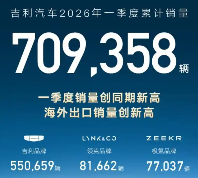 4月1日,吉利汽车发布产销快报显示,其3月销量达到23.3万辆,与去年同期持平,而一季度整体,累计销量达到70.94万辆,则是守住了同比增长1%的增幅。其中,极氪以及领克两大品牌给出了两位数的增长表现,领克销量8.1万辆,同比增长12%;而极氪品牌销量7.7万辆,同比增长86%。