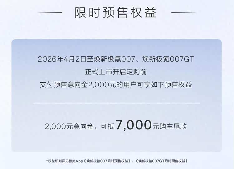 新款极氪007/007GT开启预售 标配千里浩瀚H7 新增FR-LINE性能套装