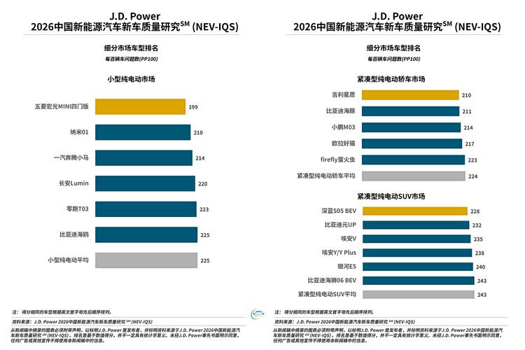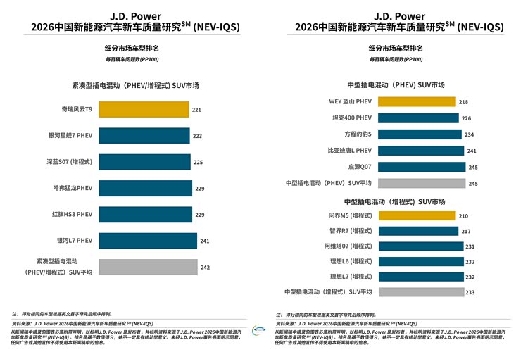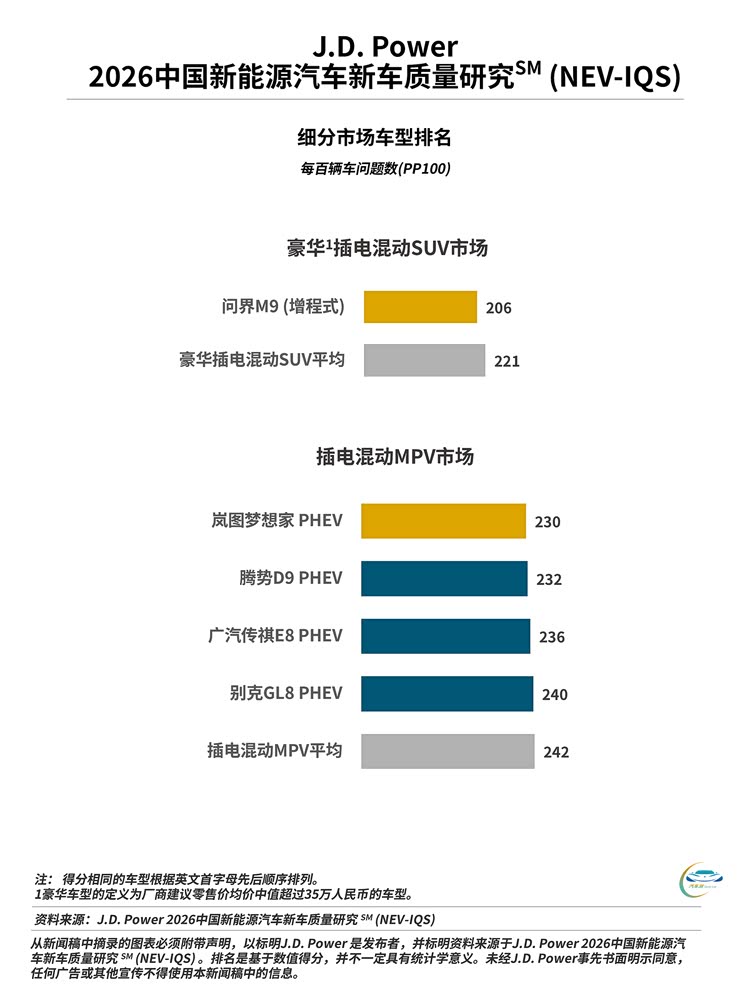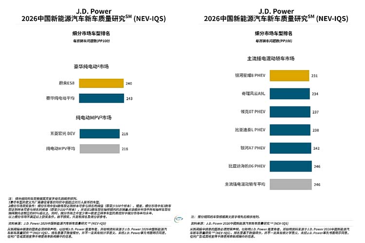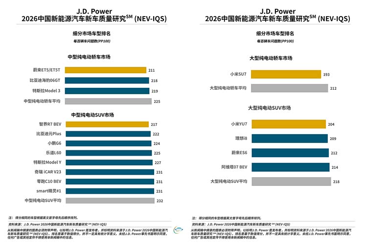 J.D.Power新能源新车质量报告,已经是连续第八年发布,这也是J.D.Power根据全国81个城市,共计21177位去年5月至12月之间购买新能源车车主的真实反馈,并依照J.D.Power特有的质量研究IQS体系做出的专业分析,2026年的报告覆盖了49个品牌共计137款车型,其中129款车型达到足量样本。