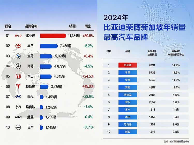 新加坡2025车市冠军出炉:比亚迪乘用车破万,电动巴士卡车均领跑