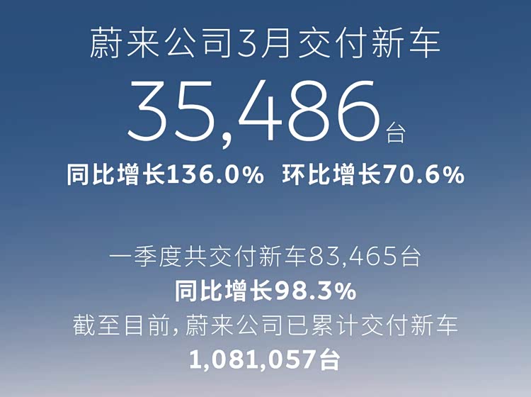 朋友们注意蔚来3月的交付量了吗?35486台,同比增长136.0%,环比增长70.6%。一季度,整个公司共交付新车83465台,同比增长98.3%,超过了财报交付指引上限。按数量排在第四,按均价排第二。
