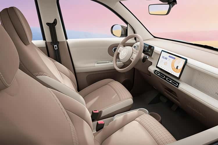 在配置上第五代宏光MINIEV也进行了全面升级,标配的怀挡设计不仅操作优雅,更为中控腾出超大储物空间,放手机、水杯超方便;配备的10.1英寸的萌趣中控大屏,支持空调调节、多场景模式切换、倒车影像等功能,OTA后还能连CarPlay、HiCar、CarLink三大互联生态。