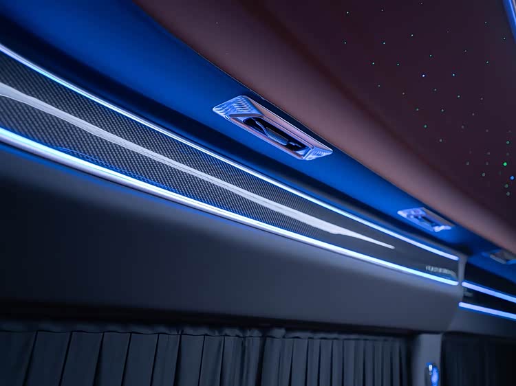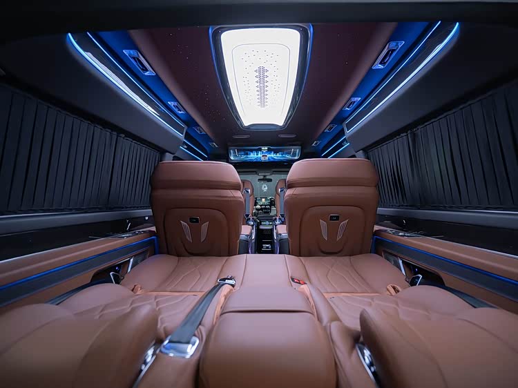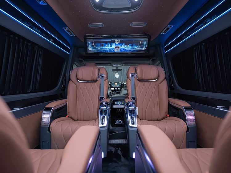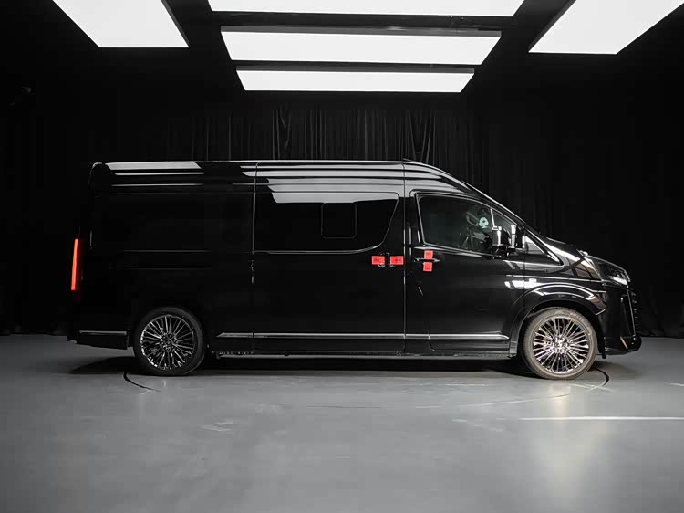 车身参数方面,该车长宽高分别为5970×1958×2280mm,轴距3855mm,车身结构为MPV,采用5门9座布局,座椅布局为2-2-2-3。
