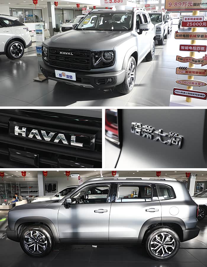 至于顶配2.0T中华田园犬版,从名字就不难发现,最大的升级则是将1.5T发动机变为2.0T,同时还换装9挡湿式双离合变速箱和适时四驱系统,并增加同级少见的后桥差速锁以及蠕行模式等硬核装备,但售价也要比中配贵2万,不过话说回来,裸车价不足12.5万就能拥有“带机械锁+真四驱”属性标签的泛越野方盒子,也算是十分罕见的,这个就要看您的个人需求了。值得一提的是,现在购车还能赠送您全车玻璃贴膜和脚垫等新车装饰,颜色可首选比较经典的黑色。