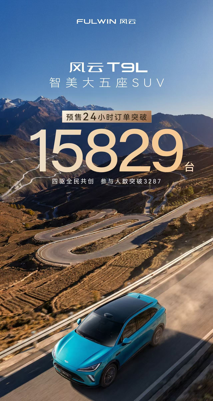 在15万级5座SUV市场,少有像风云T9L这样配备激光雷达、零重力座椅、CDC 电磁悬挂等配置。具备相近动力、智能配置水平的同级竞品,起售价多在 18 万元以上。这也是使得风云T9L在级别SUV市场中竞争力突出,而24小时15829台的预售订单也同样说明这款车在同级别车型中的竞争力。