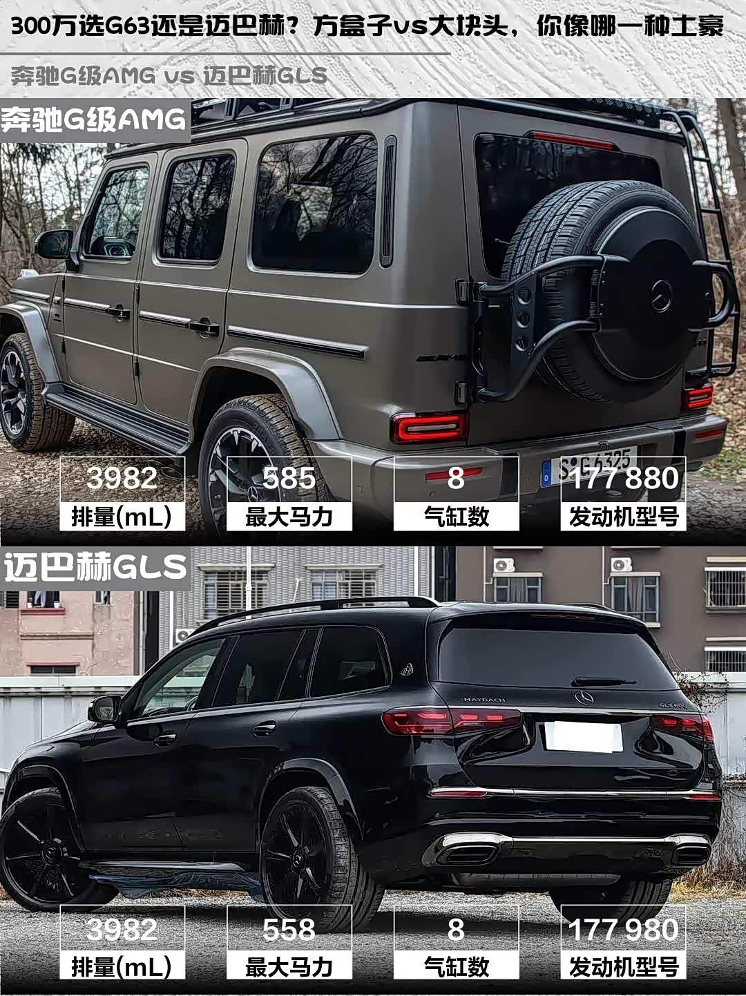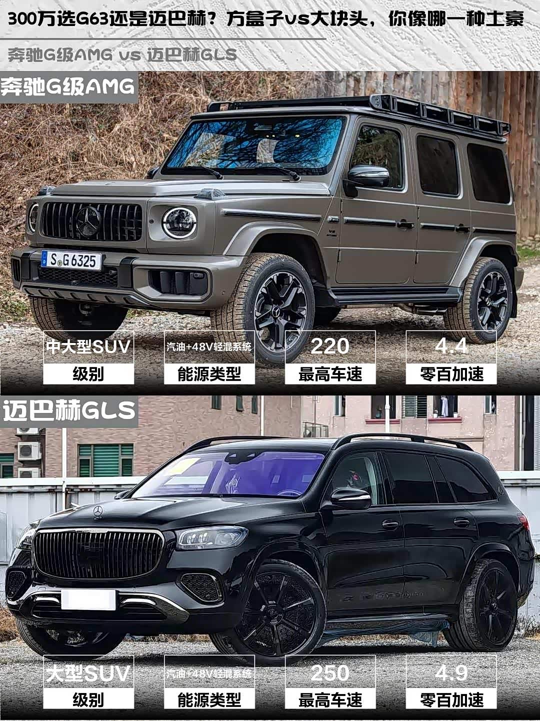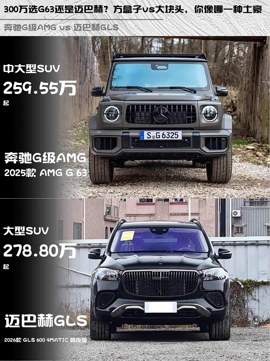 奔驰G级AMG(参数|询价) 2025款 AMG G 63 vs 迈巴赫GLS 2026款 GLS 600 4MATIC 极夜版,300万级豪华SUV该怎么选?🤔