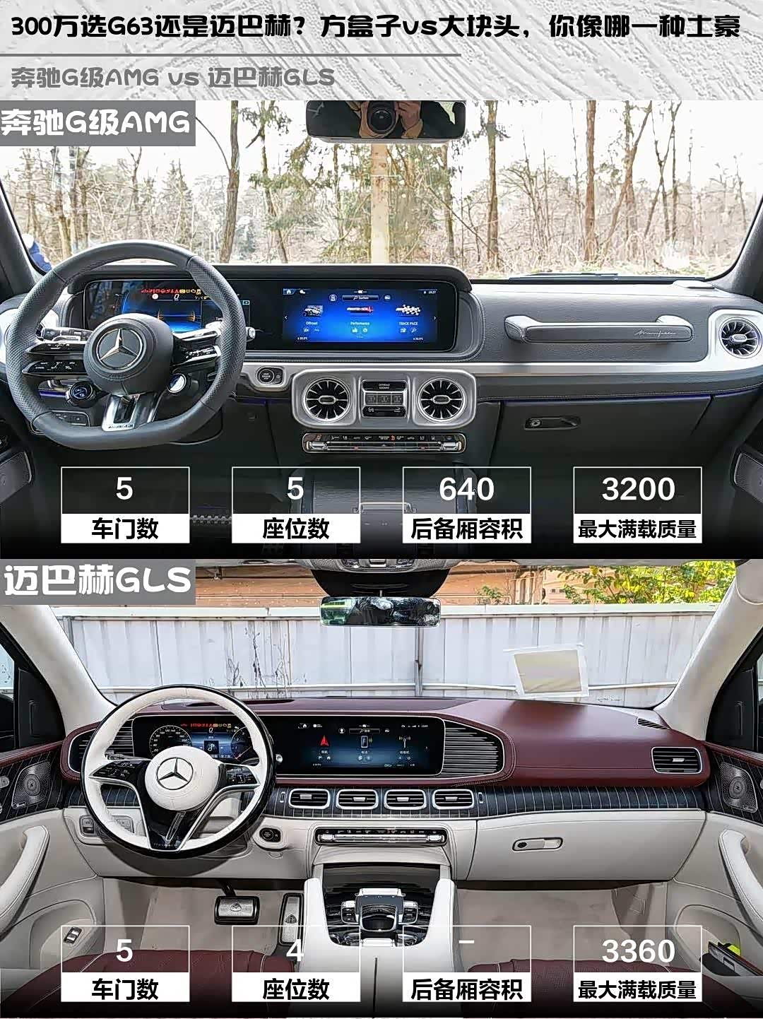 开G63像坐进装甲车,1984mm的车高让视野直接俯视公交车🚌!后备箱能塞下露营装备但不够深。迈巴赫GLS后排才是主角,四座布局+电动腿托,1838mm的车高进地库毫无压力,5208mm的车长让行李箱能横着放高尔夫球包⛳。