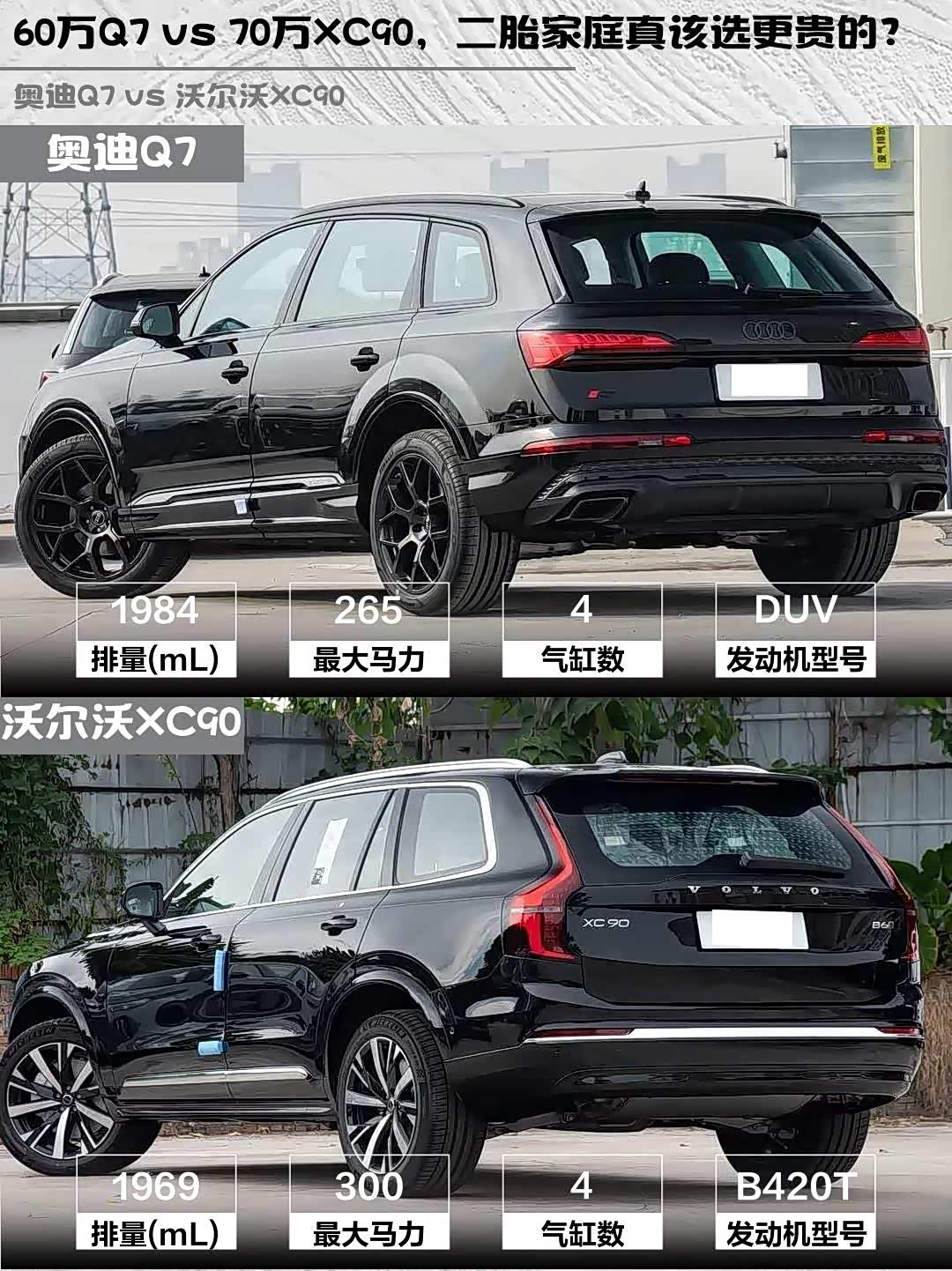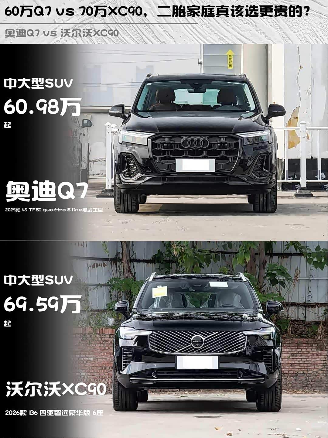 最近在纠结奥迪Q7 2025款 45 TFSI quattro S line黑武士型和 沃尔沃XC90(参数|询价) 2026款 B6 四驱智远豪华版 6座这两款车,深度试驾后聊聊真实感受!🚗💨