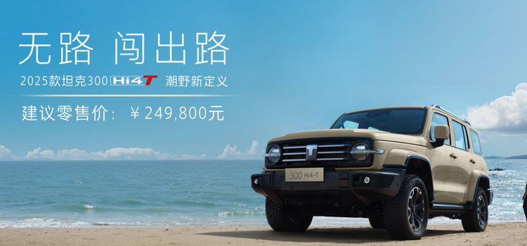 动力配置上,2025款坦克300提供2.0T汽油、2.4T柴油、Hi4-T混动三种黄金动力形式,可满足不同用户的全场景出行需求,官方售价为:Hi4-T版24.98万元,柴油版23.48万元,汽油挑战者版19.98万元、征服者版21.68万元。