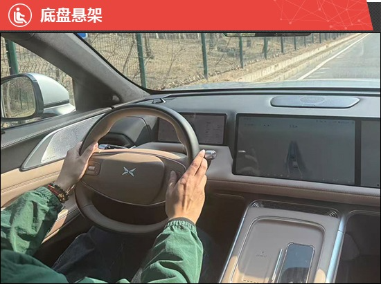 底盘方面,评测车采用前双叉臂式+后多连杆式的独立悬架组合,其配备的AI底盘由双腔空气悬架和可变阻尼减振器组成,支持智能预瞄,最远感知距离120米,配合每秒1000次路况扫描和200次悬架调节,能够精准响应路况变化。经实测,评测车通过减速带或坑洼路面时,底盘可以充分吸收振动,后排颠簸感并不明显。