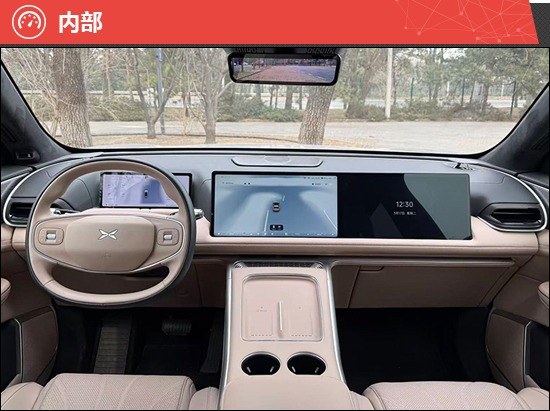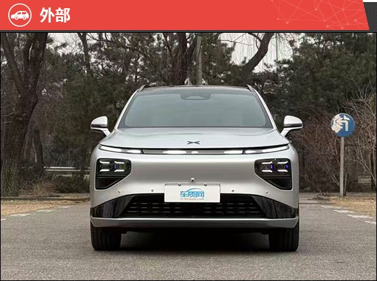 在外部感受评价中,评测车采用极具辨识度的家族式设计语言。作为小鹏品牌的旗舰SUV,其整体风格偏向沉稳大气。车顶行李架、窗线以及底部贯穿式线条,均采用统一的黑色设计,有效提升了整车的精致感与层次感。前脸配备贯穿式LED日间行车灯带,搭配两侧下方的远/近光灯组,勾勒出小鹏品牌的家族化脸谱,辨识度拉满。值得一提的是,评测车配备了无框车门,这一极具个性的设计是不少年轻消费者喜欢的。