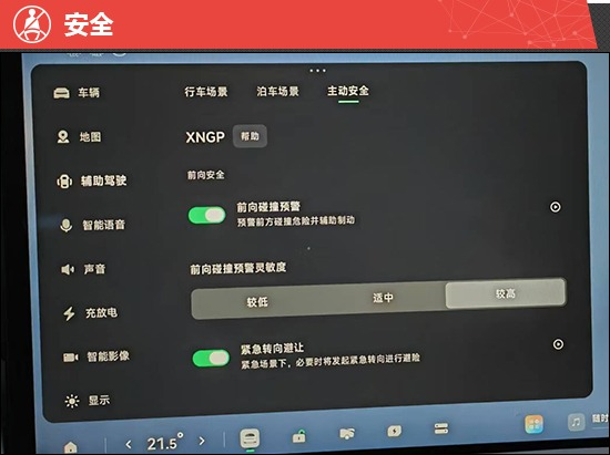 评测车搭载XNGP辅助驾驶方案,可实现城市和高速路段领航辅助、泊车辅助等功能。跟车距离支持5档调节,最近档位与前车间距适中,正常跟车状态下不容易被其他社会车辆加塞。