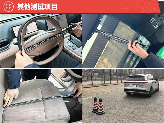 此外,我们还针对驻车雷达、灯光/视野、操控系统、轮胎、天窗、座椅、后备厢进行了测试。经过测试,评测车整体表现达到了同级别车型主流水平。其中,车辆后方视野测试成绩在测试过的同级别车型中名列前茅;加速踏板采用风琴式设计,可以提供更好的驾驶感受,并有效缓解驾驶疲劳。评测车选装了21英寸轮毂,匹配米其林PILOT SPORT EV轮胎,这是一款专为高性能电动汽车设计的运动轮胎,采用“电动方程式抓地配方”与高刚性橡胶,拥有出众抓地力。