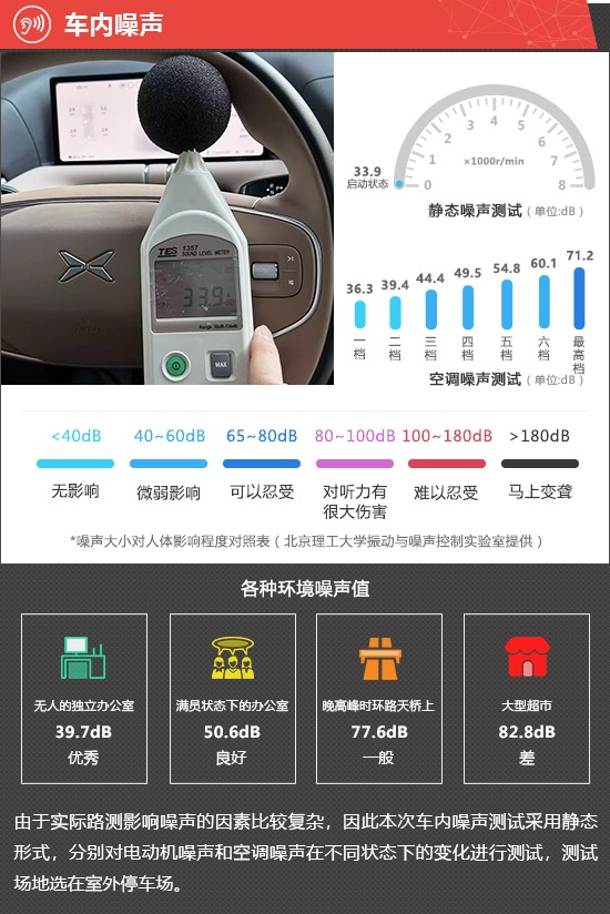 在静态噪声测试环节,2026款小鹏G9在启动状态下车内实测噪声值为33.9dB,在测试过的同级别车型中处于中上游水平。