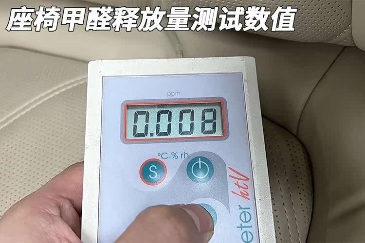 座椅的甲醛释放量测量数值为0.008毫克每立方米,顶棚中的甲醛释放量测量数值为0.021毫克每立方米。