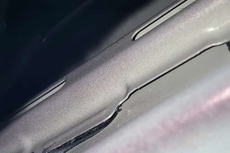 前后车门内各有两根侧防撞梁,上方是W形,下方是U形,都是高强度热成型钢,厚度大约2.2毫米,比很多车的前防撞梁都要猛。