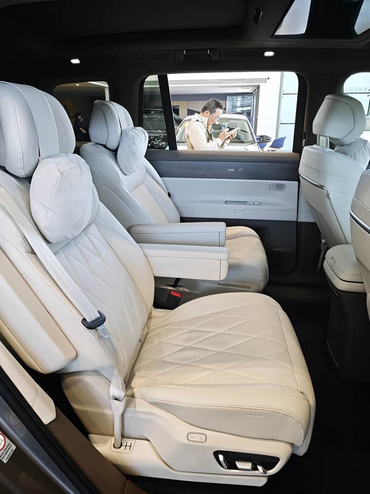 车内用料很扎实,皮质手感好,方向盘上的拨钮段落感尤其好,“哒哒哒”的有种奥迪的味道了。中央扶手、后排外侧扶手等细节的阻尼感一般,后排有大彩电但没有配备遮阳帘和小桌板。
